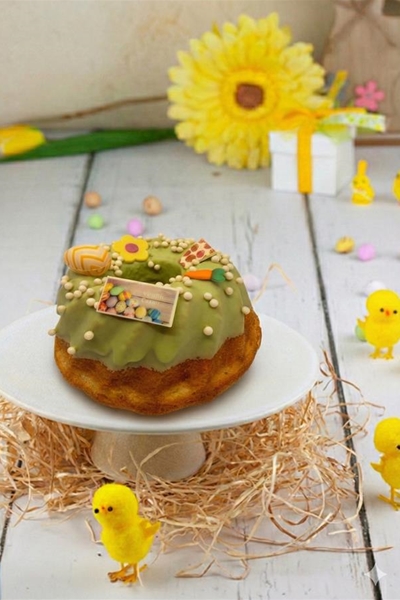 Een heerlijke frisse roomboter cake in de vorm van een tulband met de smaak van limoenen, gedecoreerd met suiker glazuur en afgewerkt met voorjaars suikerbloemetjes op een stijlvolle manier verpakt.
